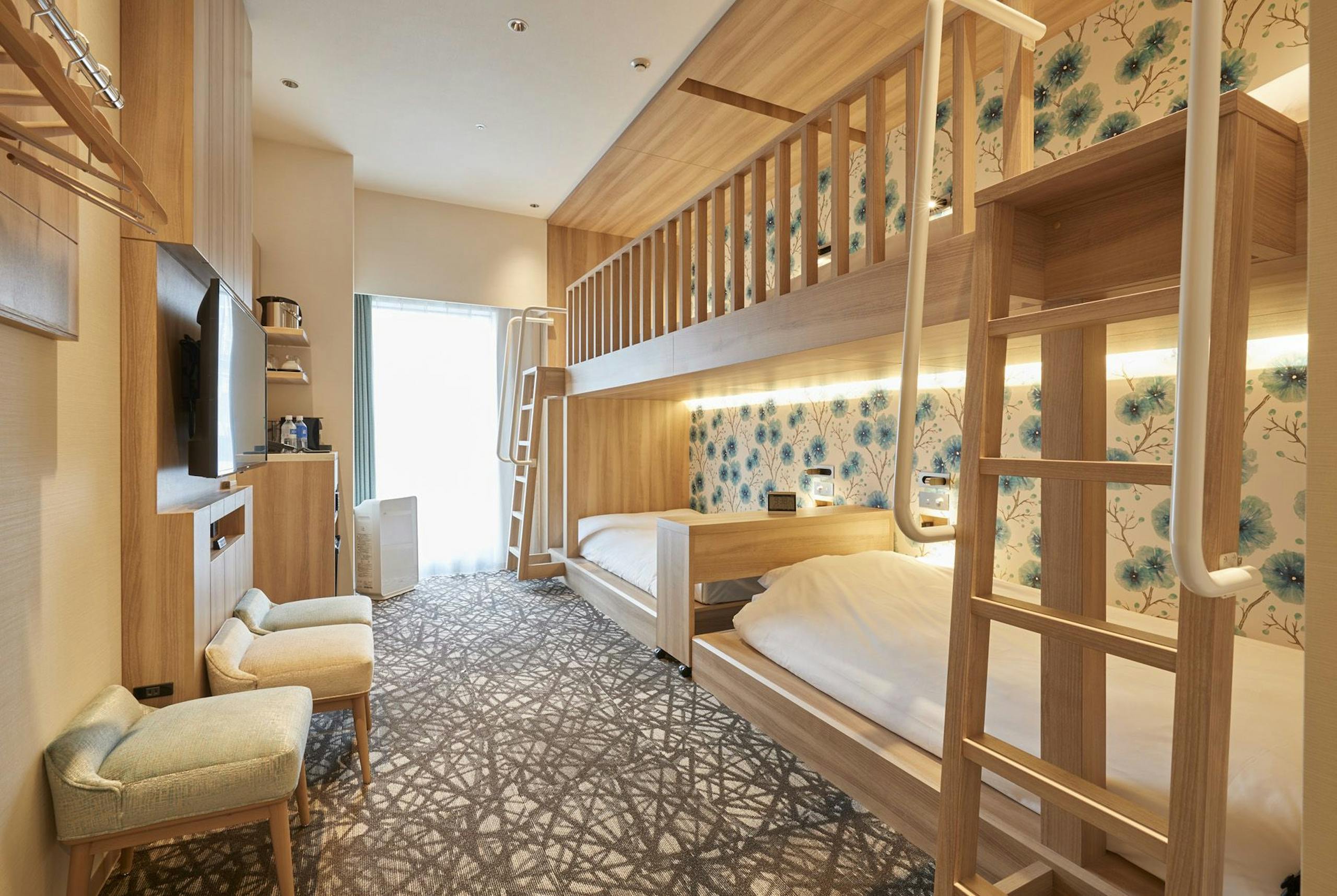 木の質感に包まれながら2段ベッドで和気あいあいと過ごせるファミリールームもあり、気軽にアウトドア気分を楽しめるカジュアルキャンプルームもあります!