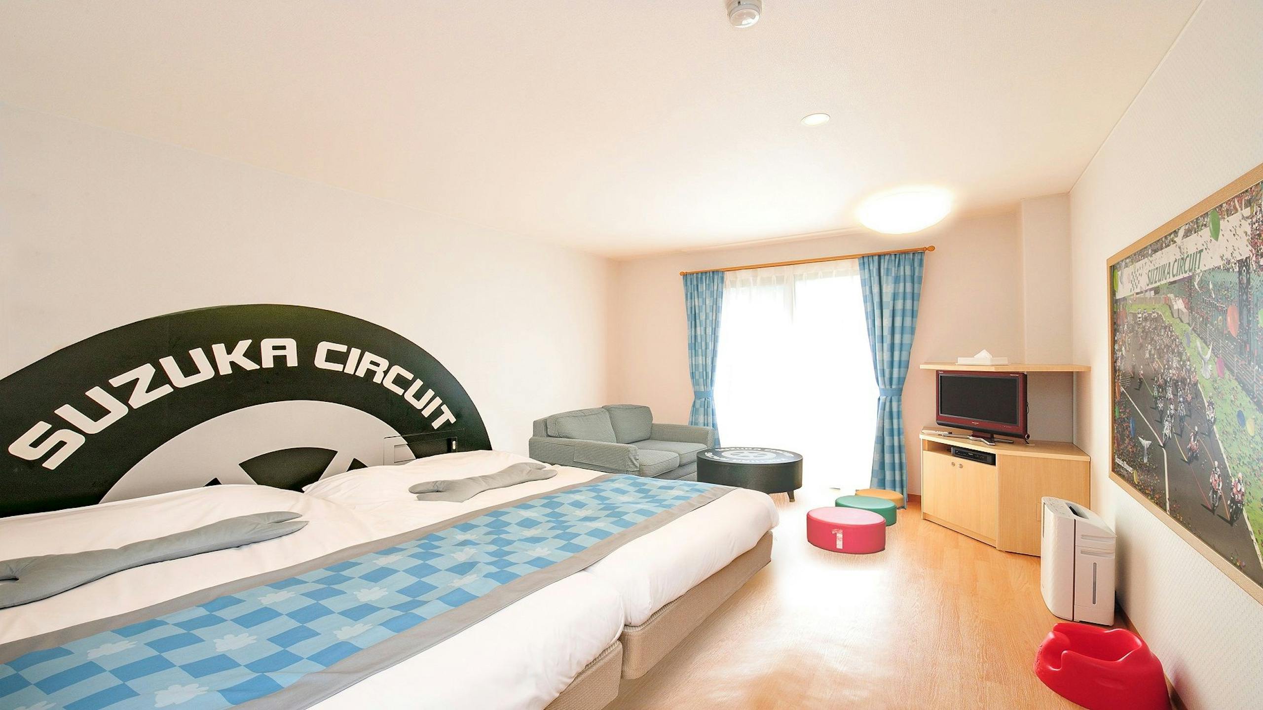 キッズ・ベビーにやさしいこだわりの詰まったかっこいいサーキットをイメージした小さなお子様連れのご家族が過ごしやすいお部屋もあります。